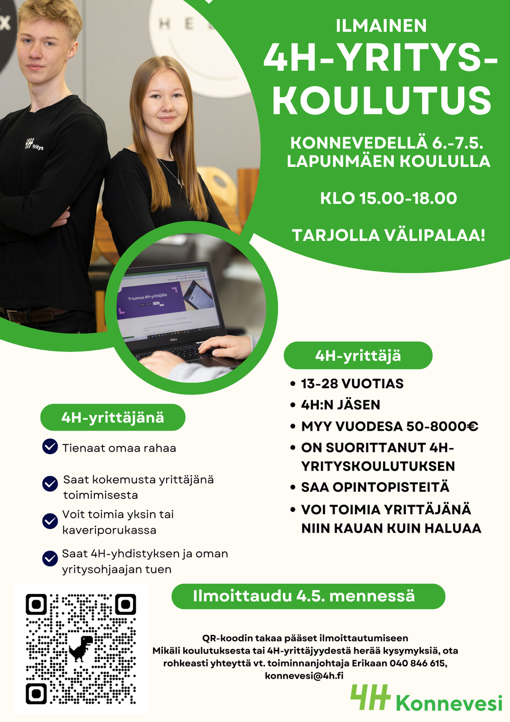 Tälle sivulle ilmestyy ajankohtaiset 4H-yrityskoulutusten ajankohdat ja tarkemmat infot