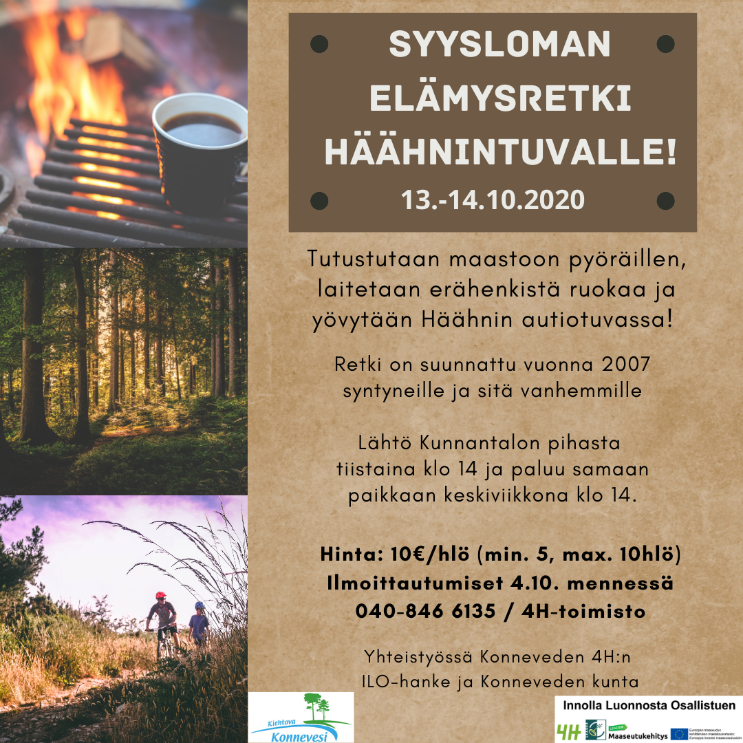 Ilmoittaudu mukaan nettilomakkeella  tai suoraan 4H-toimistoon puh. 040-846 6135