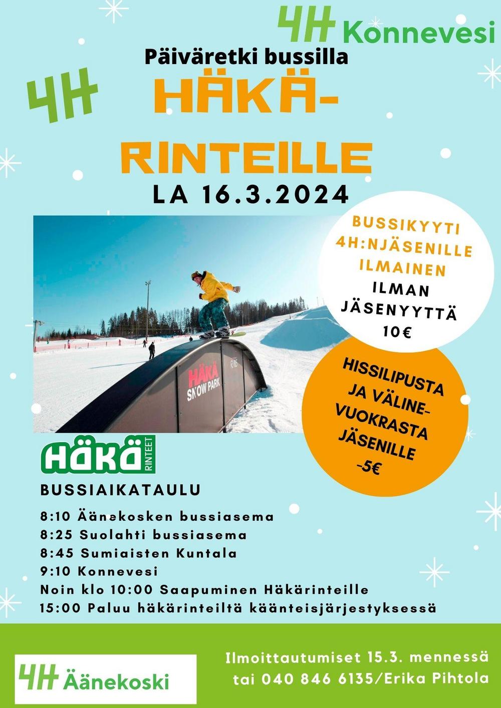 Konneveden 4H yhteistyössä Äänekosken 4H:n kanssa järjestää yhteiskyydin Häkälle 16.3. Kyyti on jäsenillemme ilmainen, muille 10€.