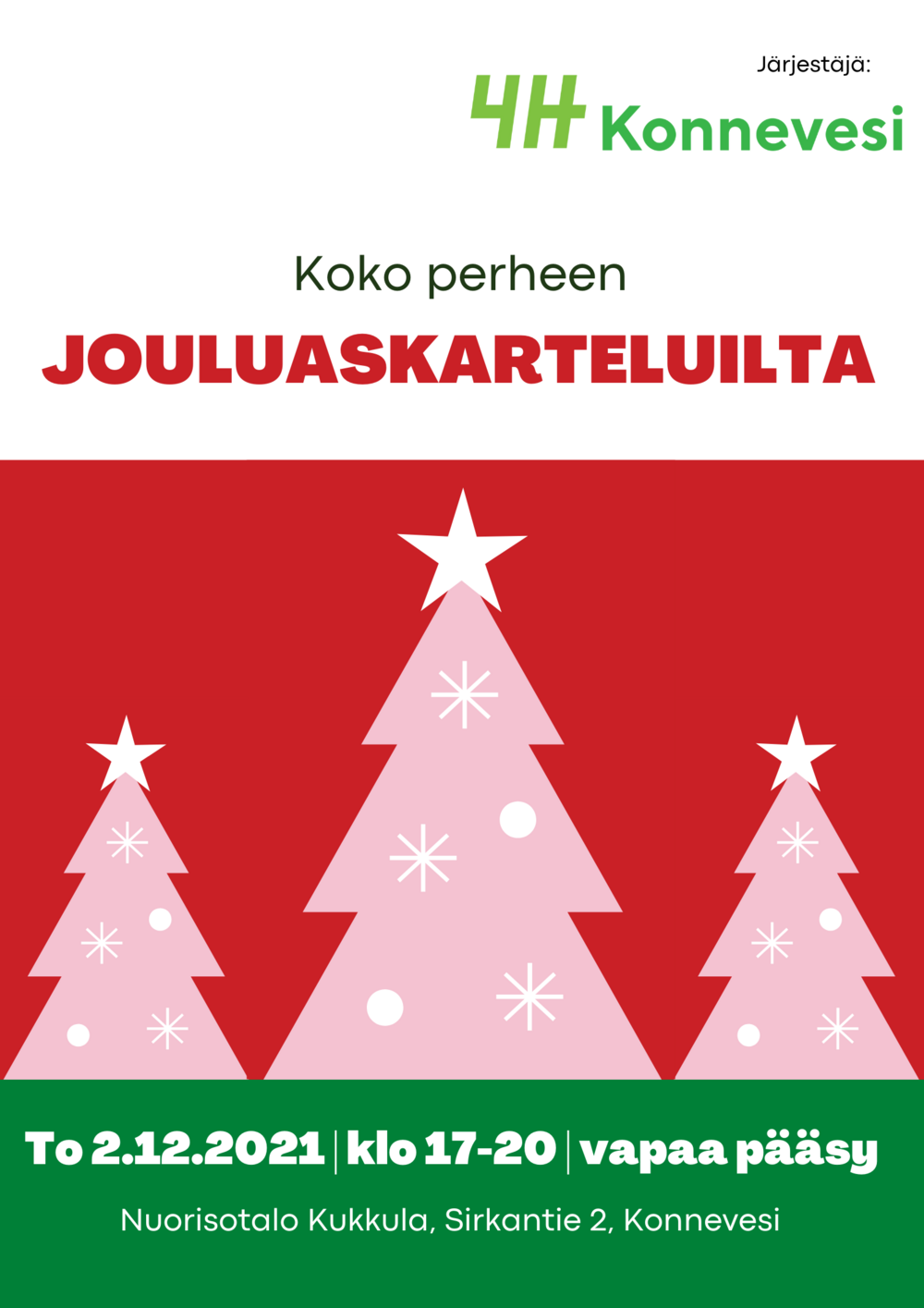 Halutessasi voit ennakkoilmoittautua tapahtumaan: https://konnevesi.4h.fi/yhdistys/ilmoittautumislomake/