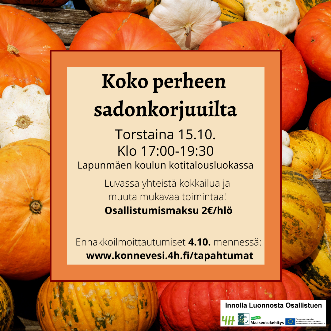 Ilmoittaudu mukaan nettilomakkeella tai suoraan 4H-toimistoon puh. 040-846 6135